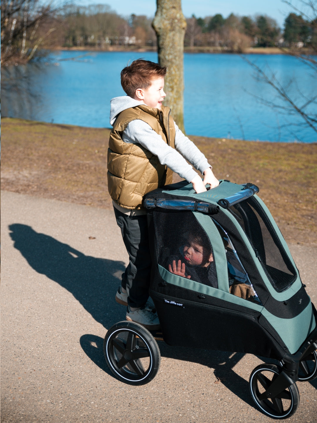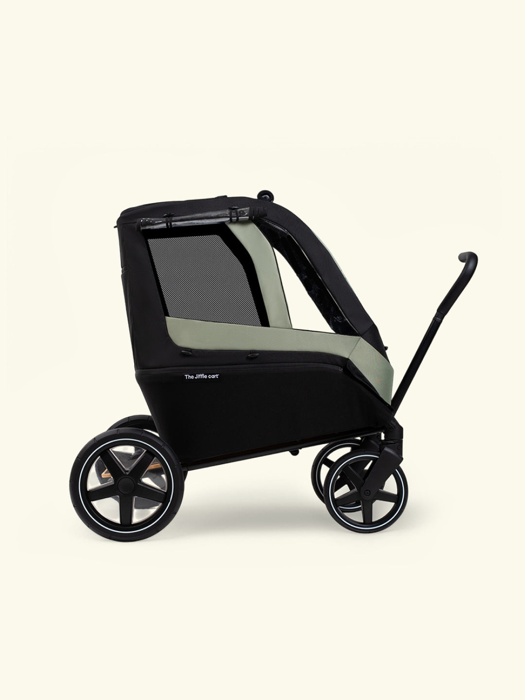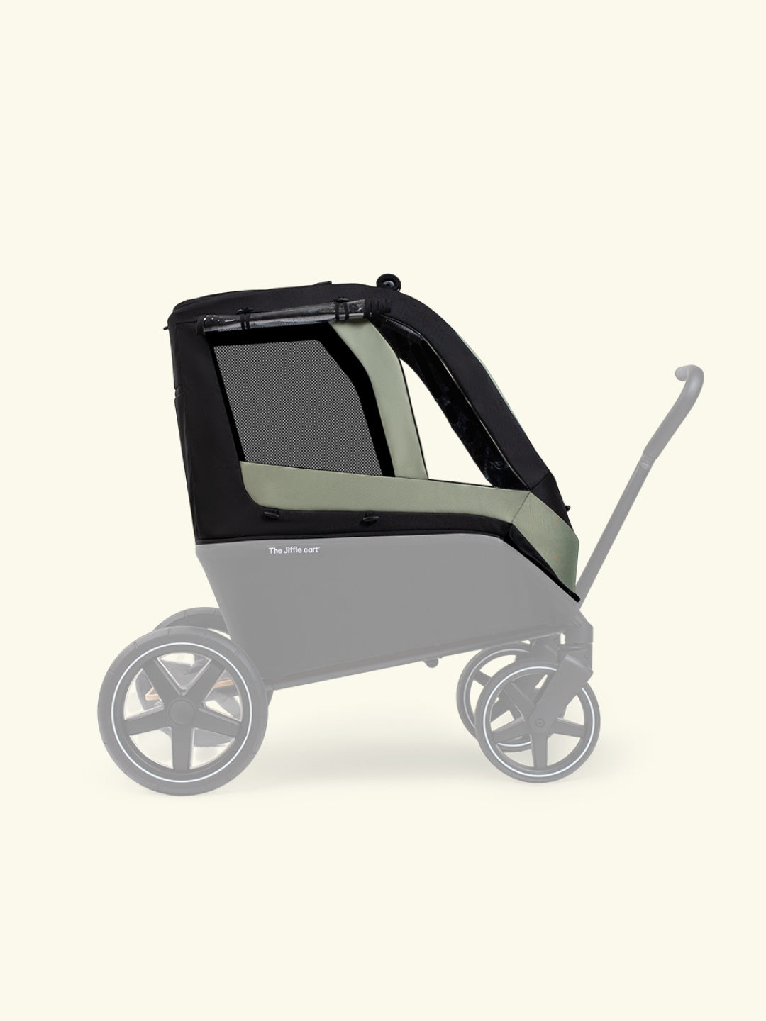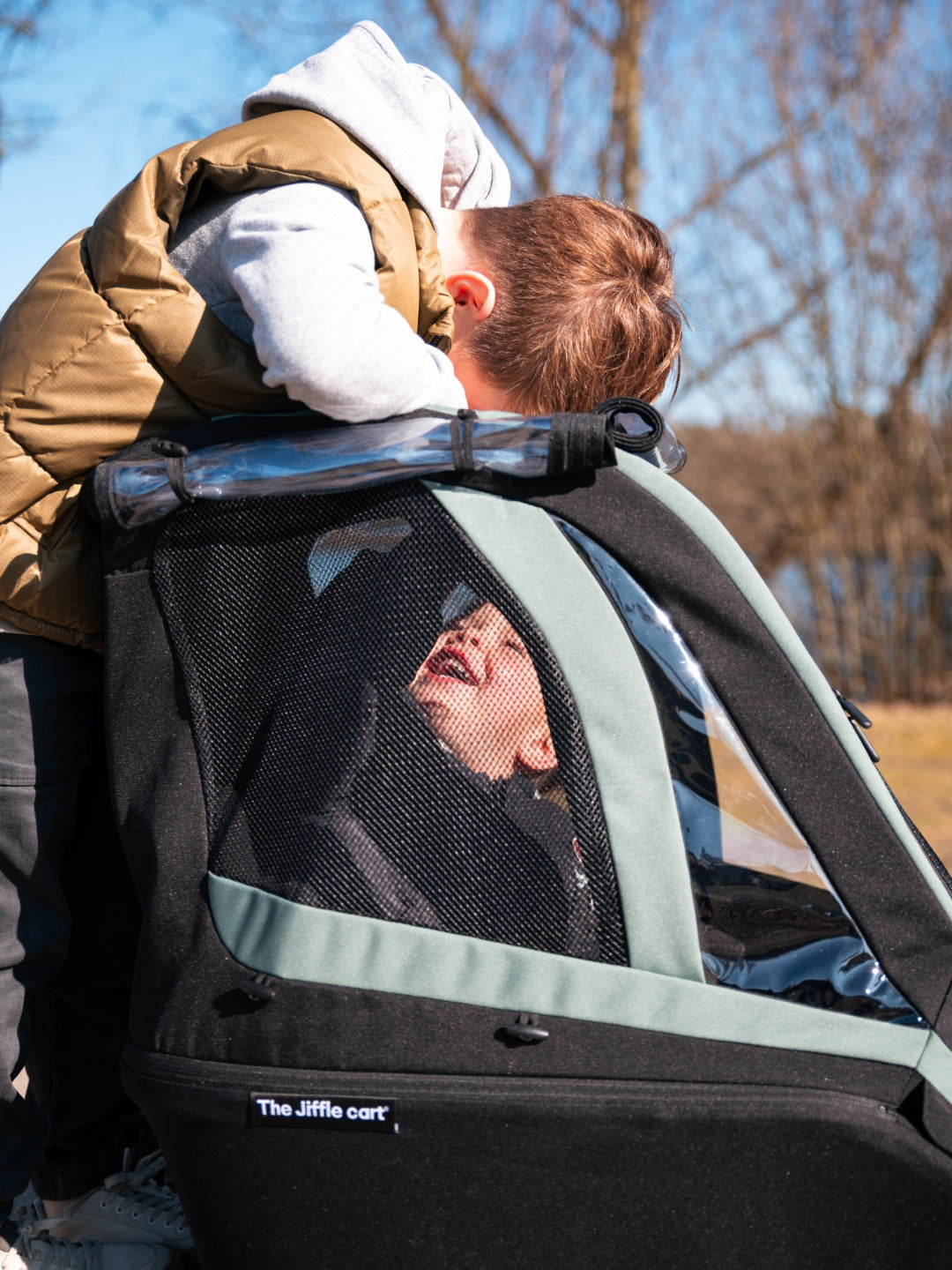 The Jiffle weatherproof cab – comfort in all weathers. This elegant and functional cabin makes the The Jiffle even more versatile and comfortable companion for your daily walks and adventures. The weatherproof material protects your child from rain, wind and bright sun – whatever the weather, your little passenger will always be protected and cared for.