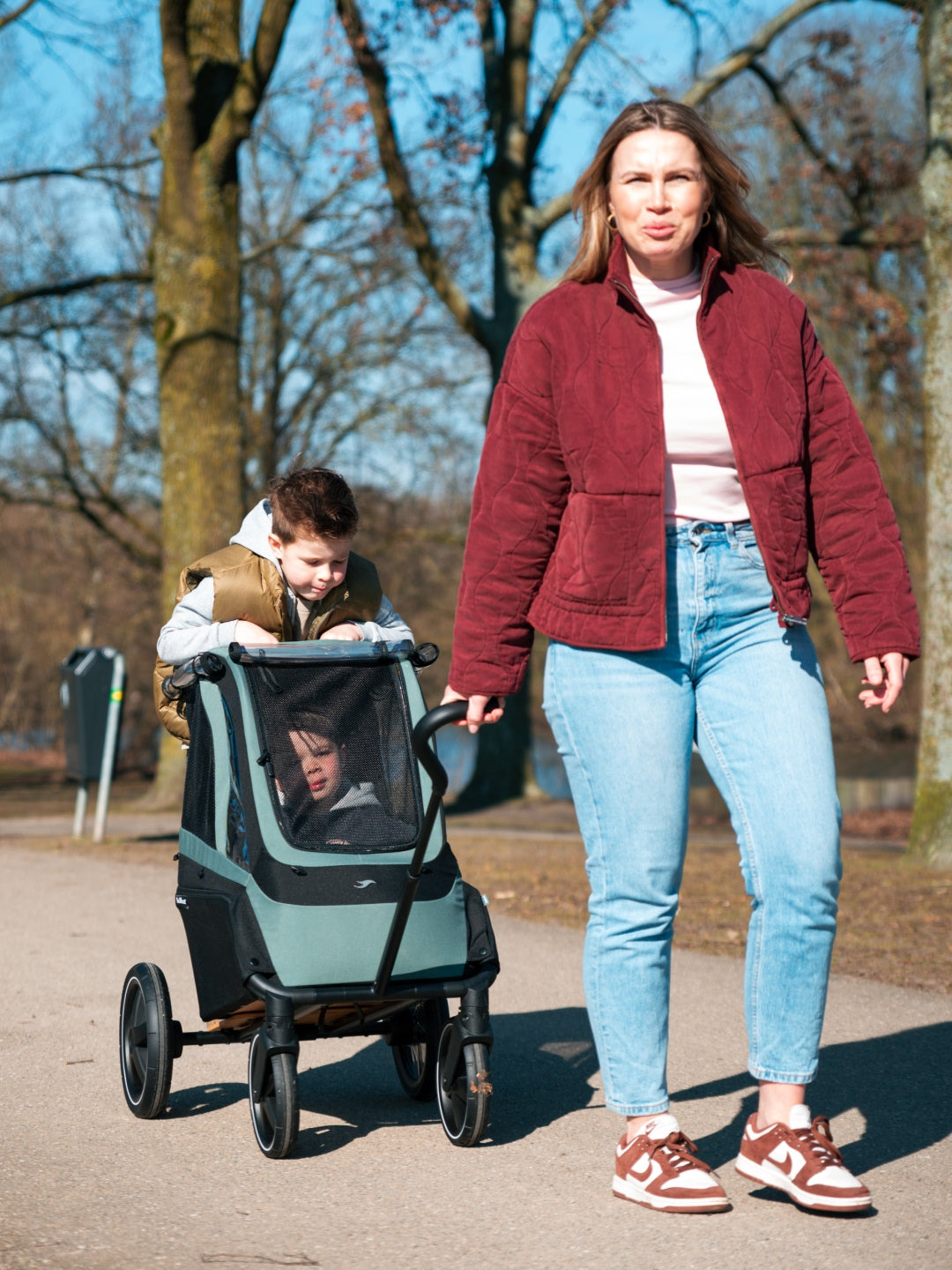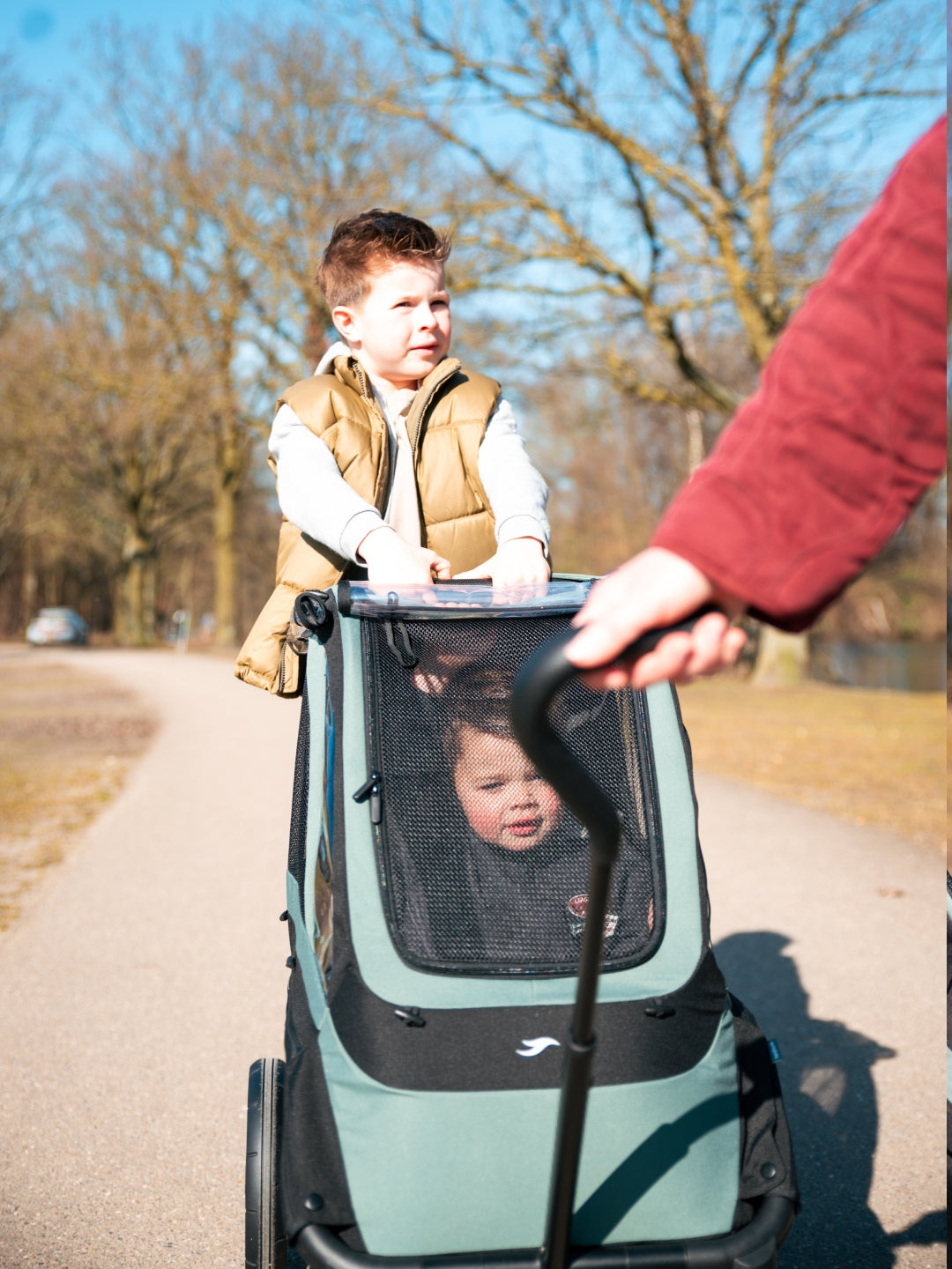 If it’s raining outside or there’s a strong wind, all sides of the cabin can be easily closed. That way, your baby stays dry and warm. On warmer days, the stroller’s cabin provides shade, while the fine mesh sides and front ensure excellent air circulation – fresh air moves freely but insects and splashes stay away.