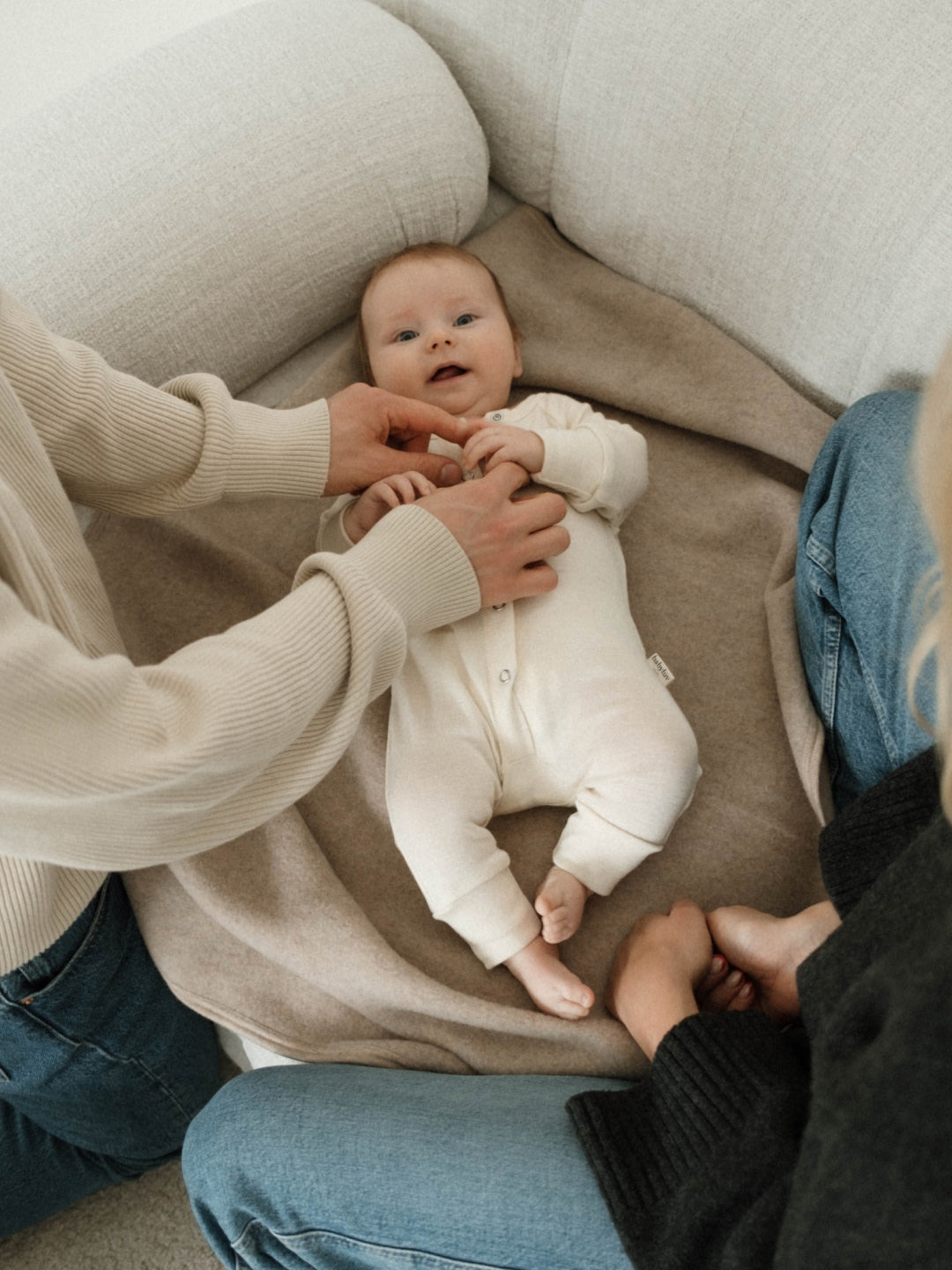 Babyluv Studio’s newborn onesie is a highly functional clothing item made from a merino wool and silk blend. This material regulates body temperature and is very gentle on sensitive skin.