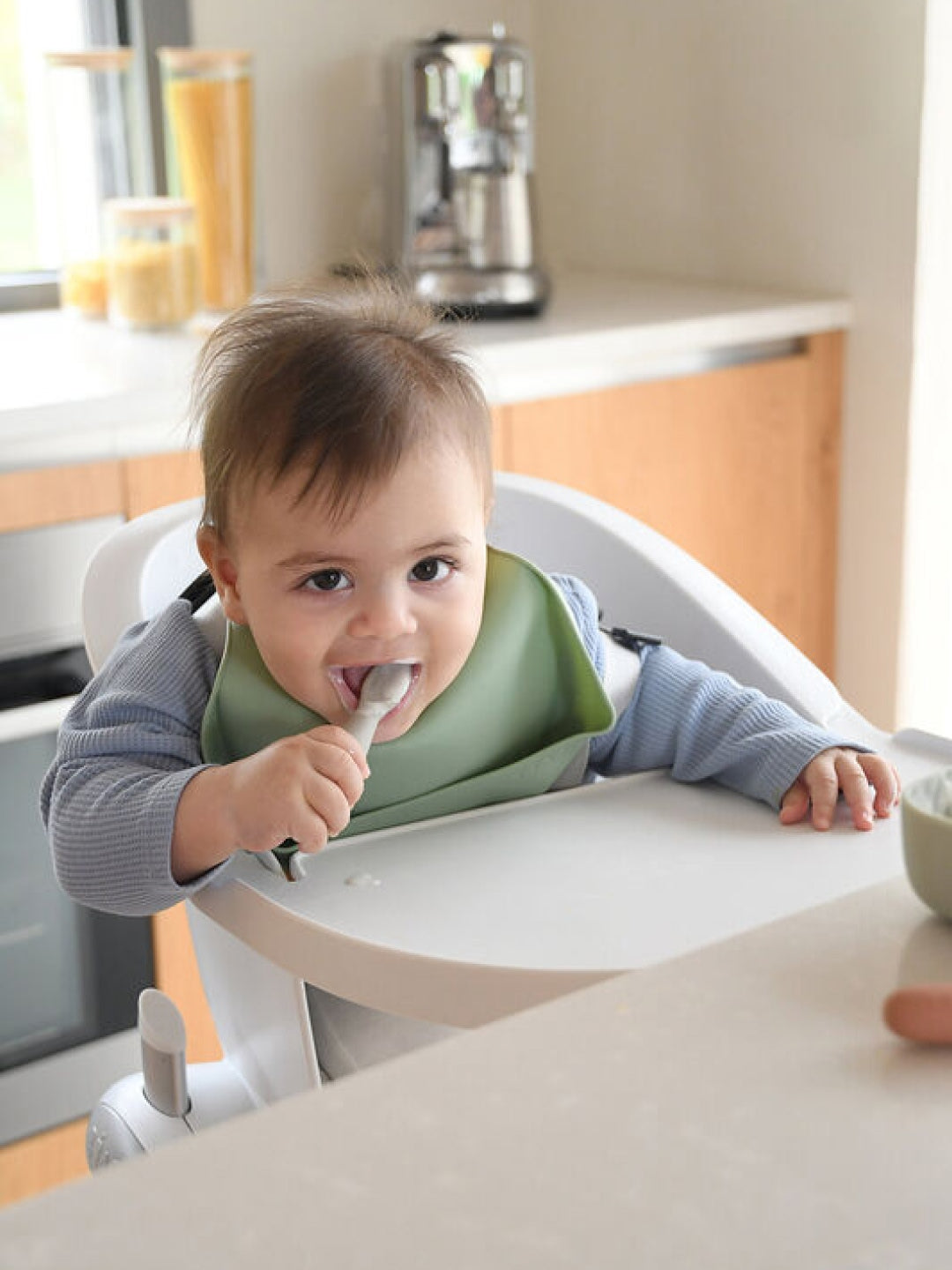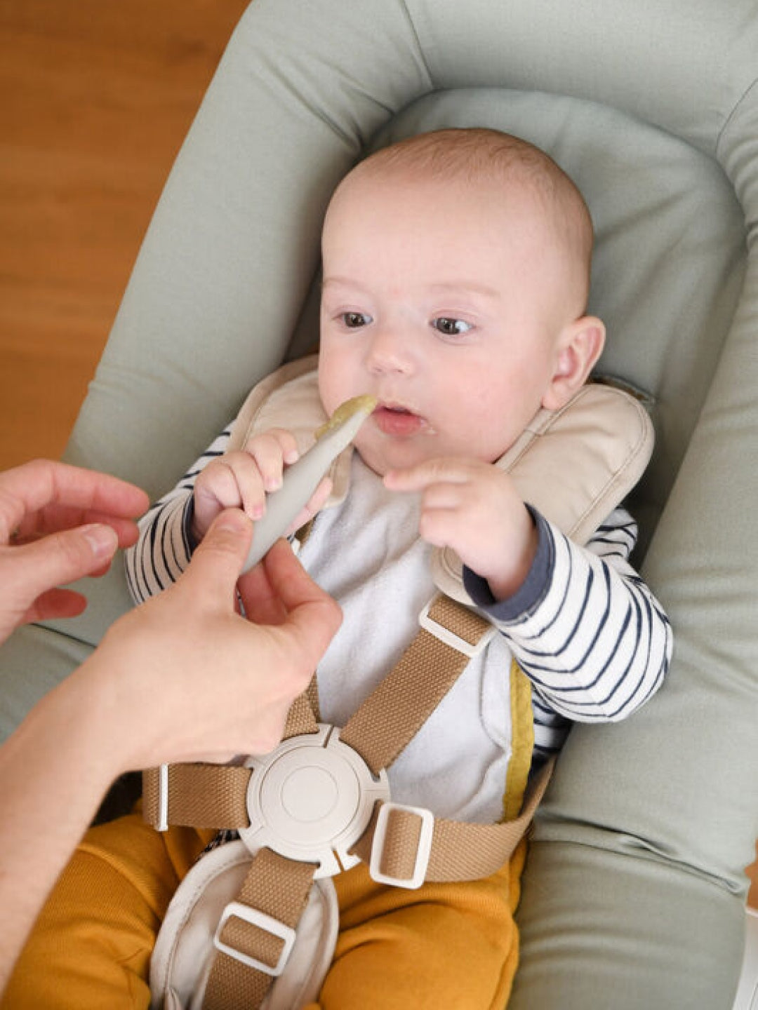 - Use from 4 months, with an adult to familiarise them with the spoon and their first foods. From 6/8 months, on their own to gradually gain independence.