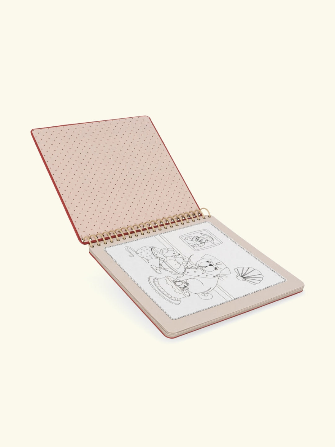 Magic water book with six coloring boards and a refillable water brush pen. Designed with reusable pages with simple line drawings that reveal colors when wet.