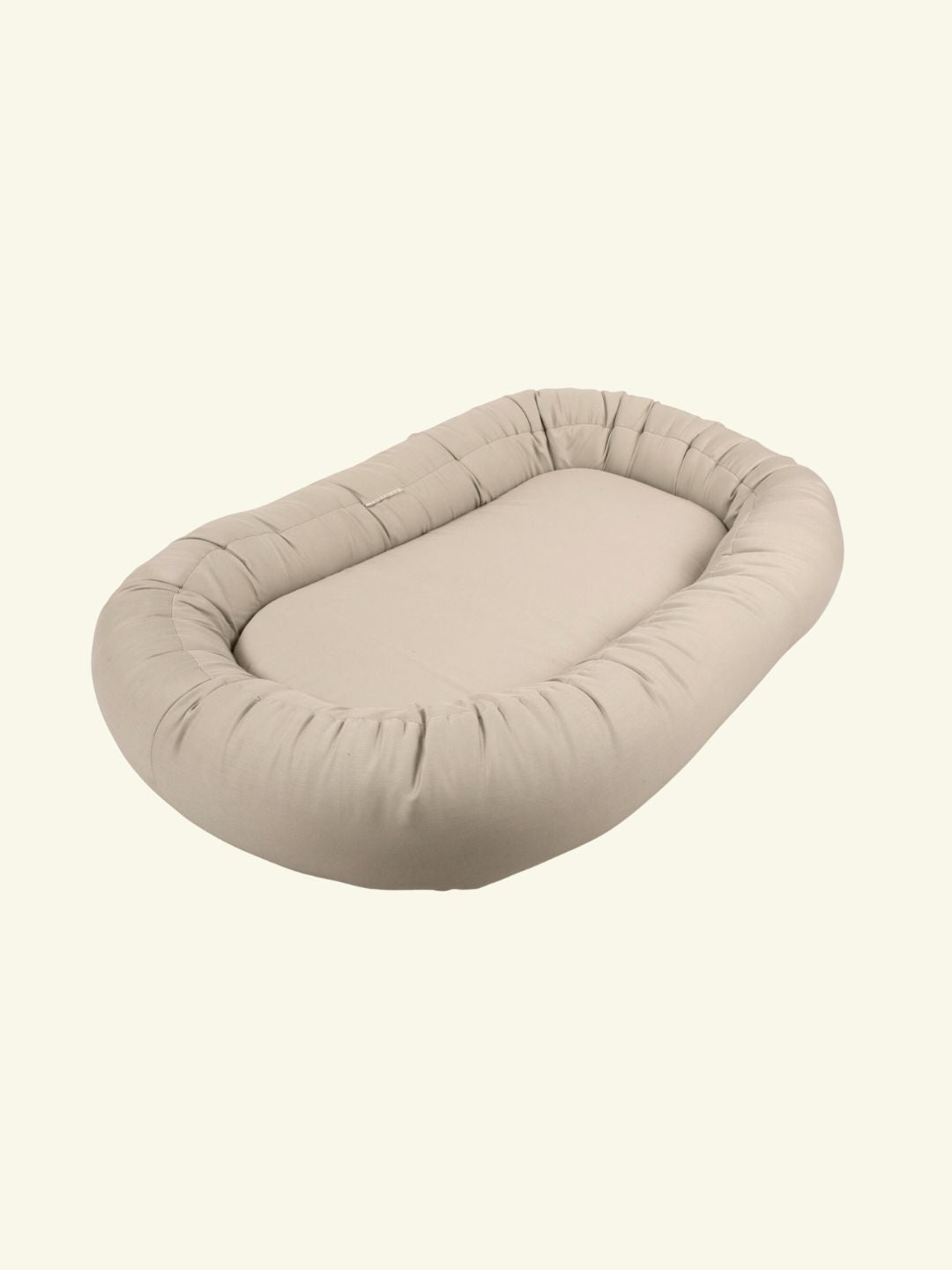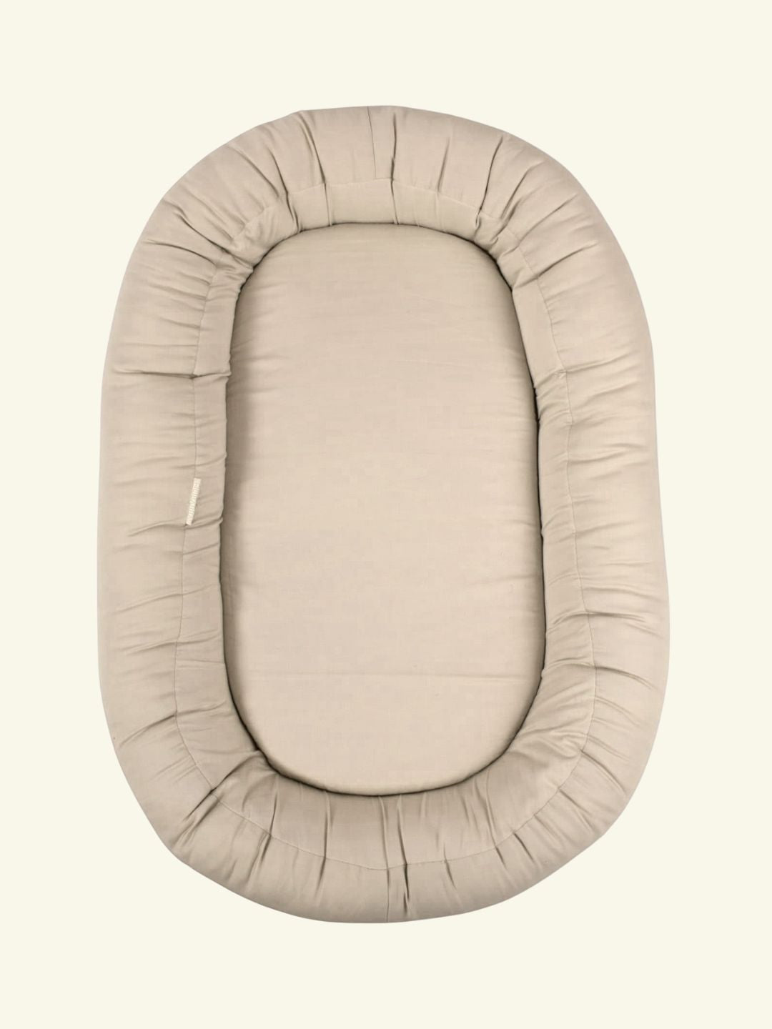 With its outer fabric made of GOTS-certified organic cotton sateen as well as a comfy removable mattress and highly breathable mesh inlays, our new baby nest is both beautiful and functional.