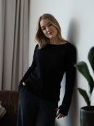 Merino wool is 100% natural and the finest, softest wool. It is a temperature-regulating material that keeps you warm without causing sweating, as it wicks moisture away from the body. The Haruu merino wool pullover is slightly thicker than regular merino wool, making it indispensable for our fall and winter weather. Thanks to the convenient thumbholes at the ends of the sleeves, this pullover can be worn in multiple ways.