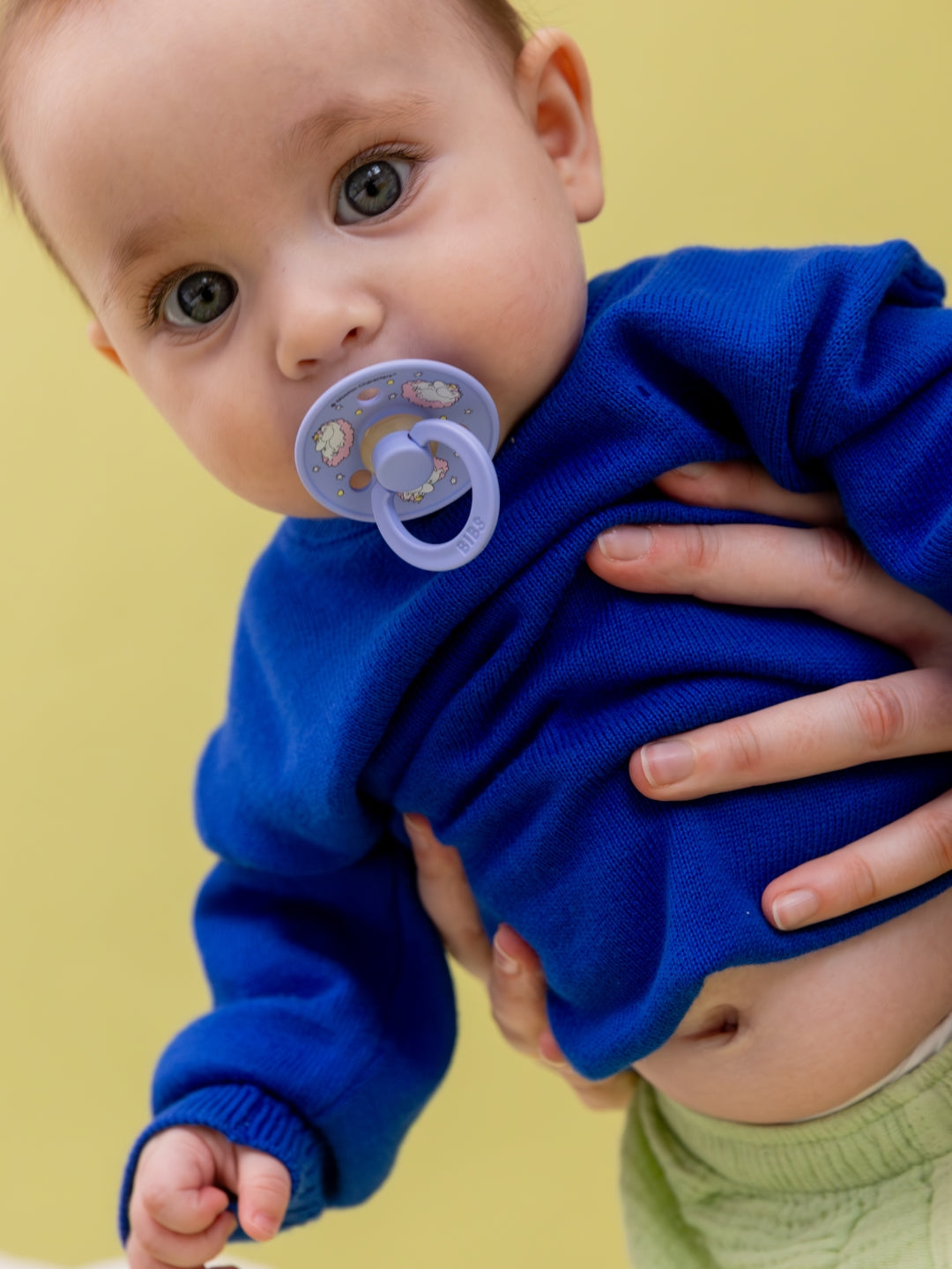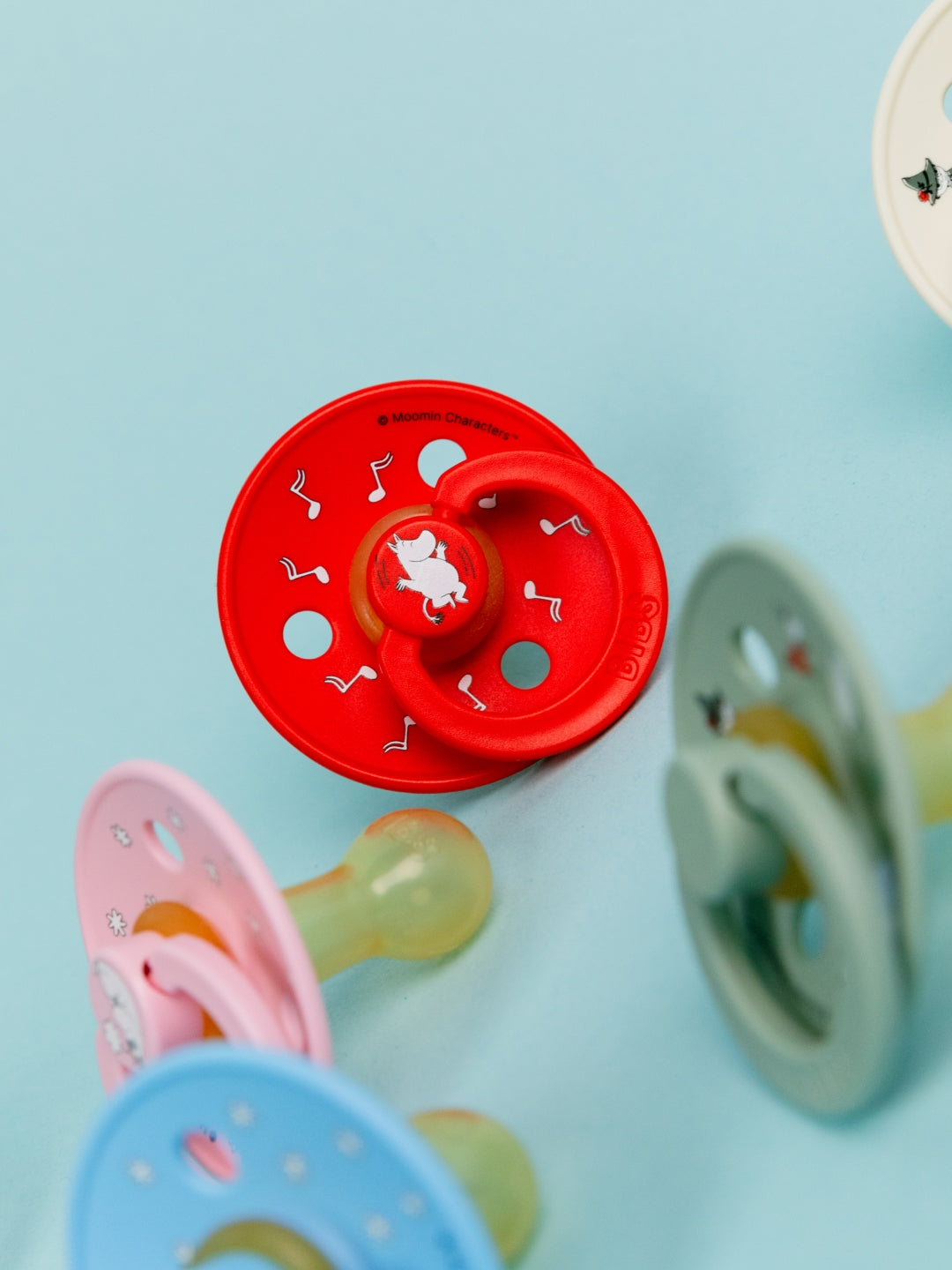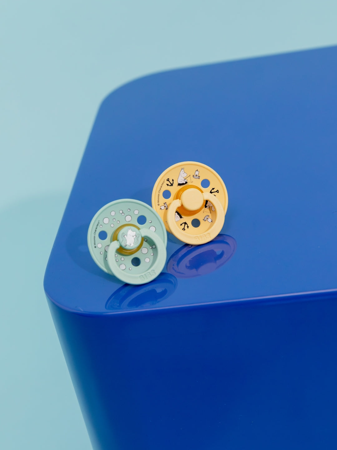 Colour Round is the original BIBS pacifier and has been on the market for over 40 years. Original from 1978! It has the signature round BIBS shield with three vent holes and round BIBS engraved handle ring. The shield is carefully designed to curve away from the sensitive and delicate skin around the baby’s mouth to prevent moisture build-up. The shield comes in one size no matter the nipple size.