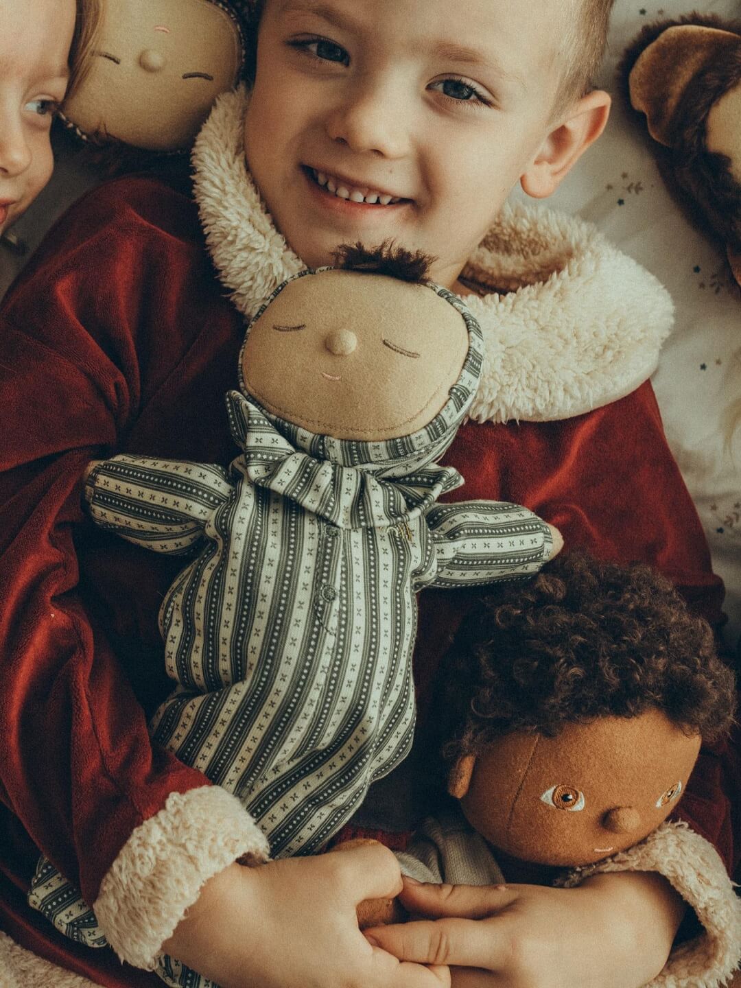 Like all Dozy Dinkums, Pie - Clover is fully posable and crafted from the softest cotton outer, making this doll an ideal gift or cherished keepsake for marking a first holiday.