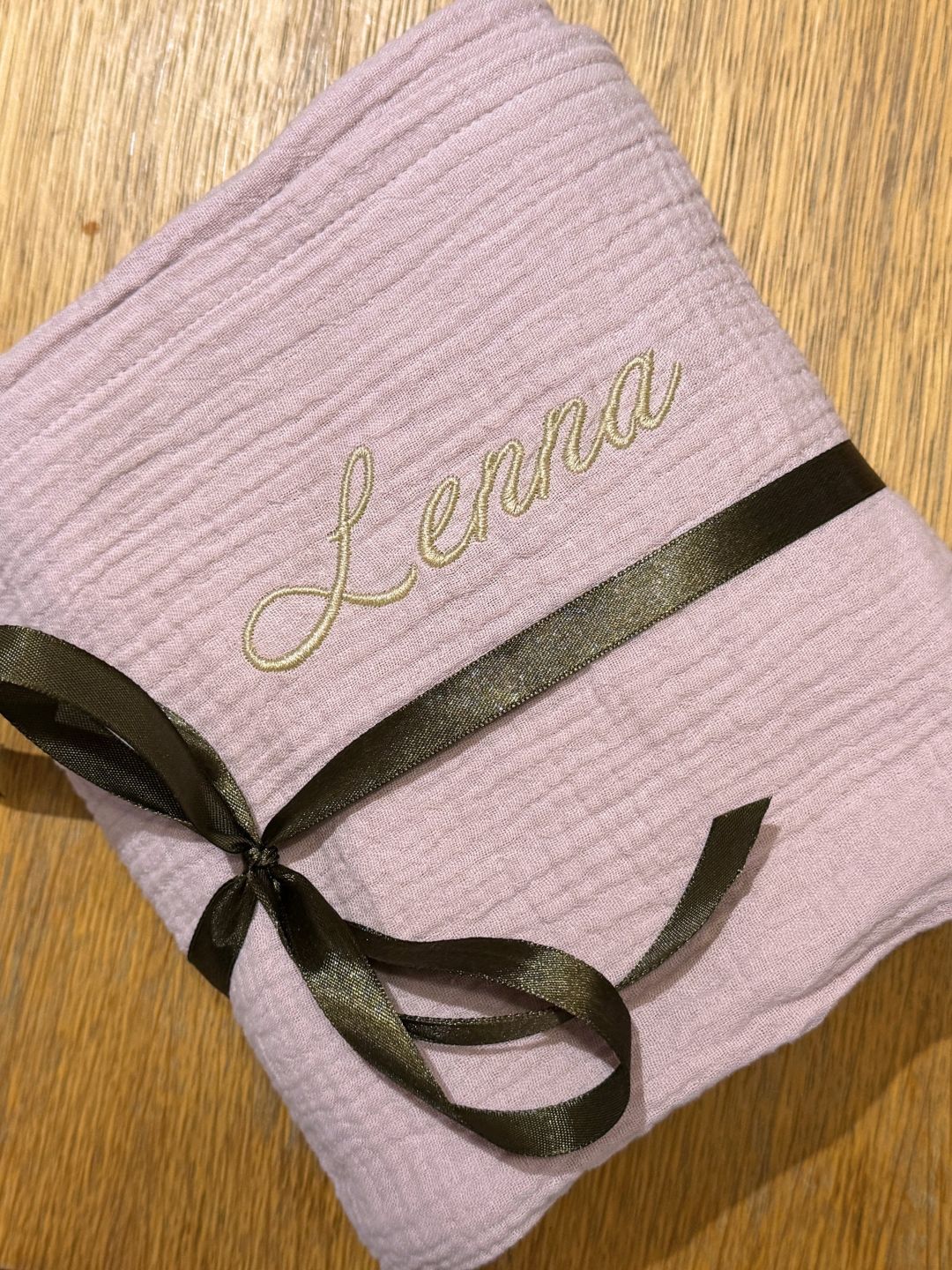 Babyluv Studio Muslin Baby Blanket with personalized embroidery name. Delivery time up to 10 days.